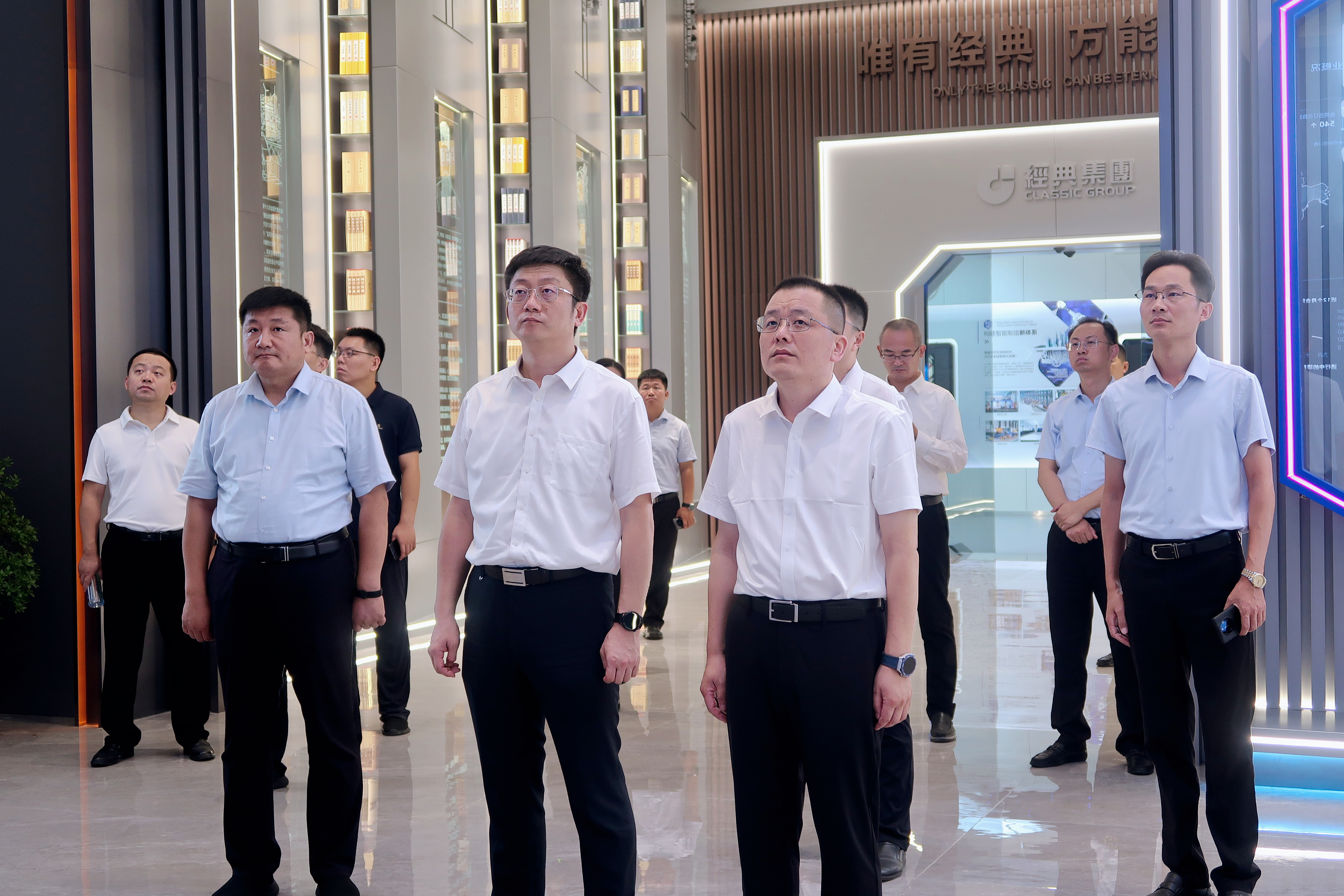 王慶書記一行來到集團展廳察看工業(yè)數(shù)字化信息平臺建設(shè)情況,詳細了解了數(shù)字生產(chǎn)、數(shù)字設(shè)備、數(shù)字孿生以及產(chǎn)業(yè)數(shù)字化發(fā)展等情況,對經(jīng)典集團數(shù)字化轉(zhuǎn)型的先進做法和取得成效給予了充分肯定。他強調(diào),要繼續(xù)保持創(chuàng)新發(fā)展的良好勢頭,加快推進數(shù)字化轉(zhuǎn)型,不斷深化數(shù)字賦能工業(yè)發(fā)展,探索更多新技術(shù)、新應用、新模式,進一步提升企業(yè)的智能化水平和核心競爭力。